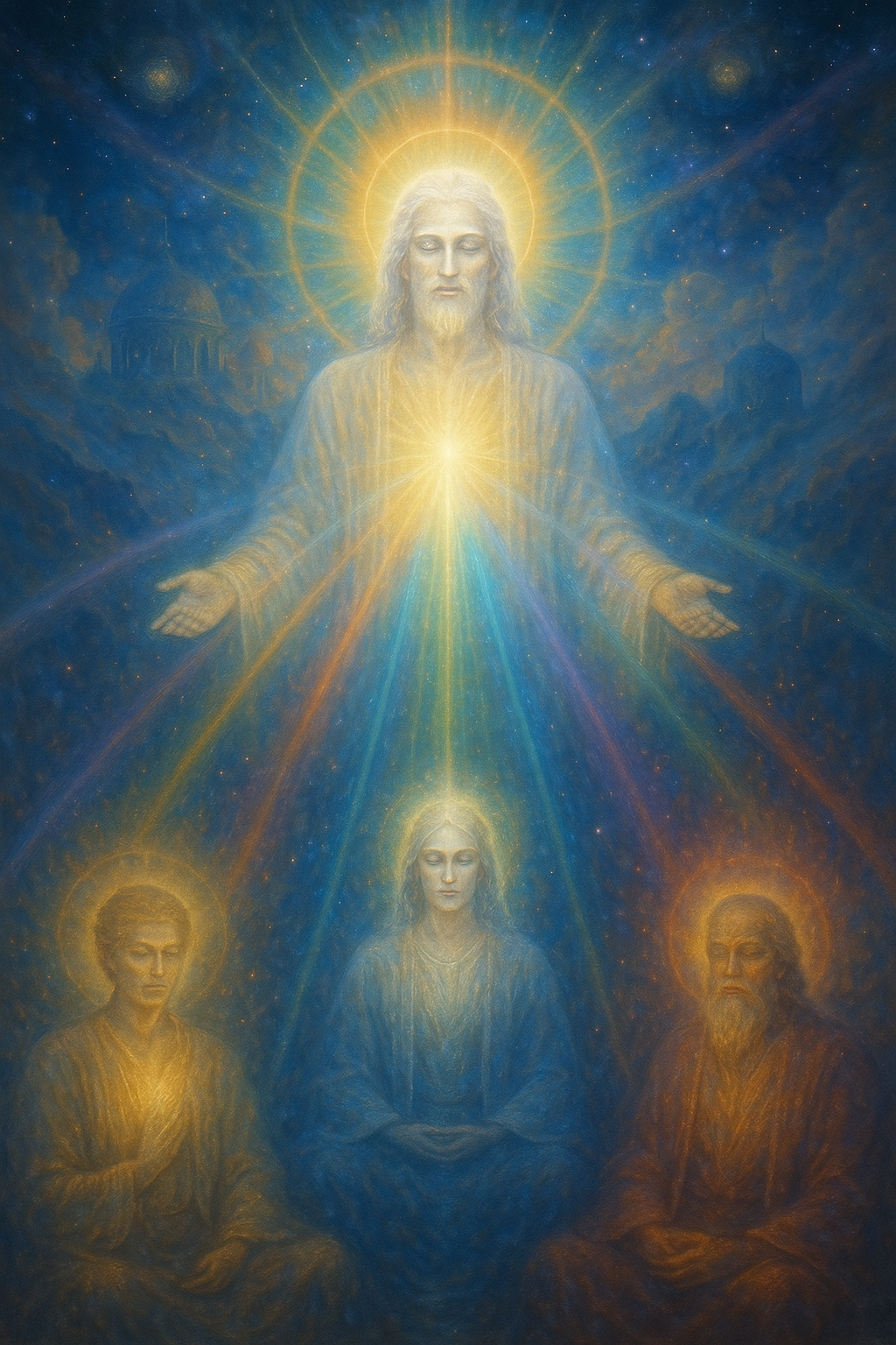 Together, these three great figures assist Sanat Kumara in executing the divine plan, balancing the forces of will, love, and wisdom to ensure the harmonious evolution of humanity and the planet.