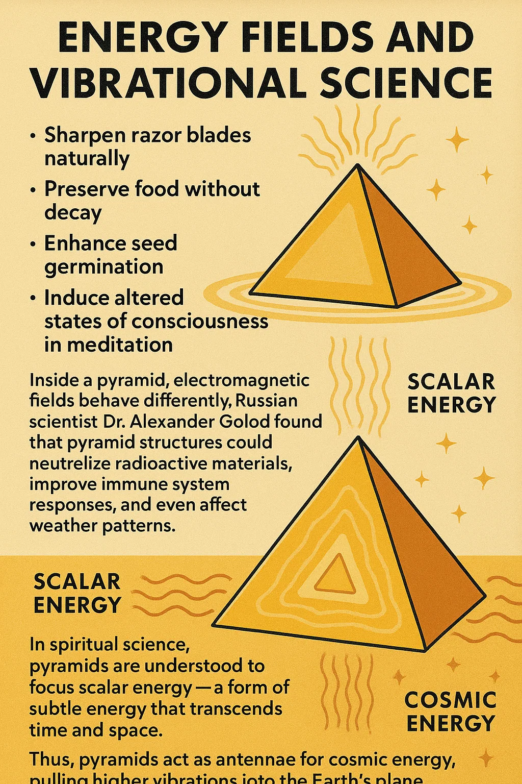 In spiritual science, pyramids are understood to focus scalar energy—a form of subtle energy that transcends time and space.